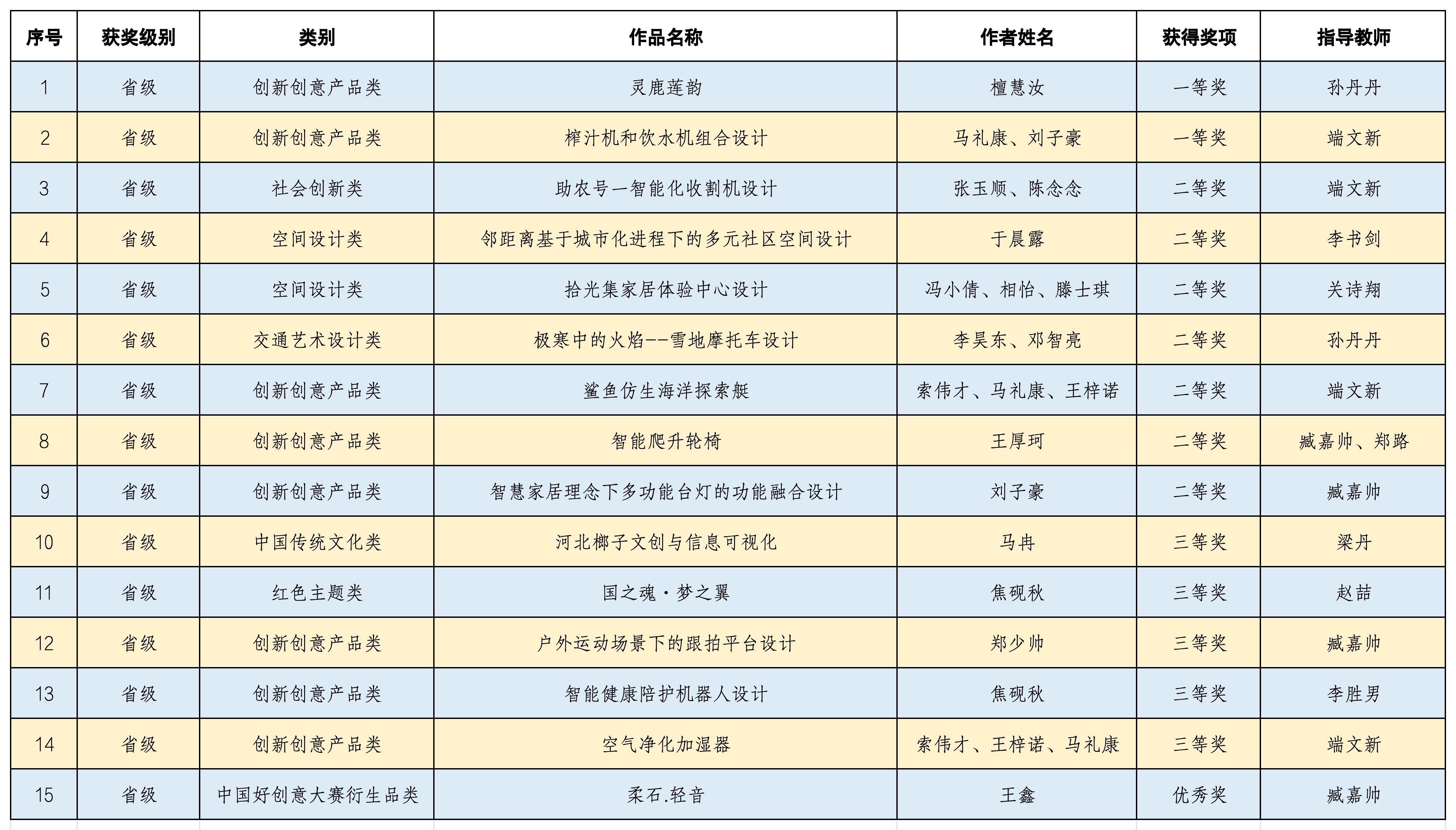 近日,第19届中国好创意暨全国数字艺术设计大赛落下帷幕,我校师生凭借扎实的专业功底与卓越的创新能力脱颖而出,获得二等奖3项、三等奖2项。