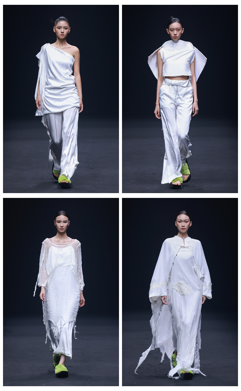 发布会上,陈佳老师以“荷着・无常”为主题推出系列女装。该系列依托校企合作服装品牌“荷着”的研发,通过企业与乐鱼官网网页版_乐鱼(中国)官方的联动合作,既为服装产业解决了非遗技法传承创新与市场转化的技术问题,也为乐鱼官网网页版_乐鱼(中国)官方师生提供了实战实践平台,实现教学成果与产业需求的共振与共赢。