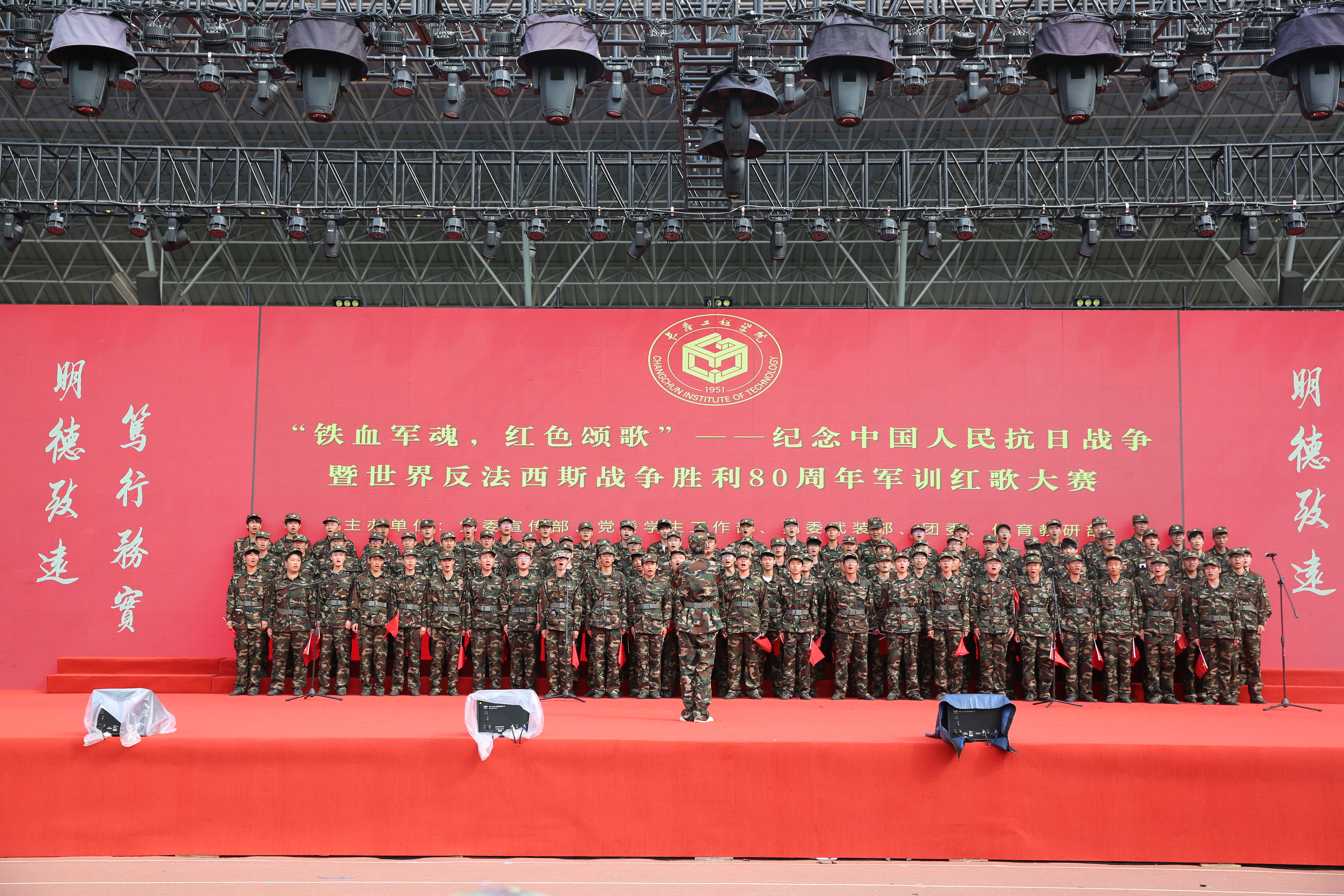 为深切缅怀革命先烈,弘扬伟大抗战精神,强化爱国主义教育,9月28日,我校“铁血军魂,红色颂歌”——纪念中国人民抗日战争暨世界反法西斯战争胜利80周年军训红歌大赛在湖西校区体育场举行。在国庆节来临之际,长工程学子以歌咏志,用一首首铿锵旋律展现了青春风采,这嘹亮的歌声正是“我和祖国共成长”誓言的生动实践。