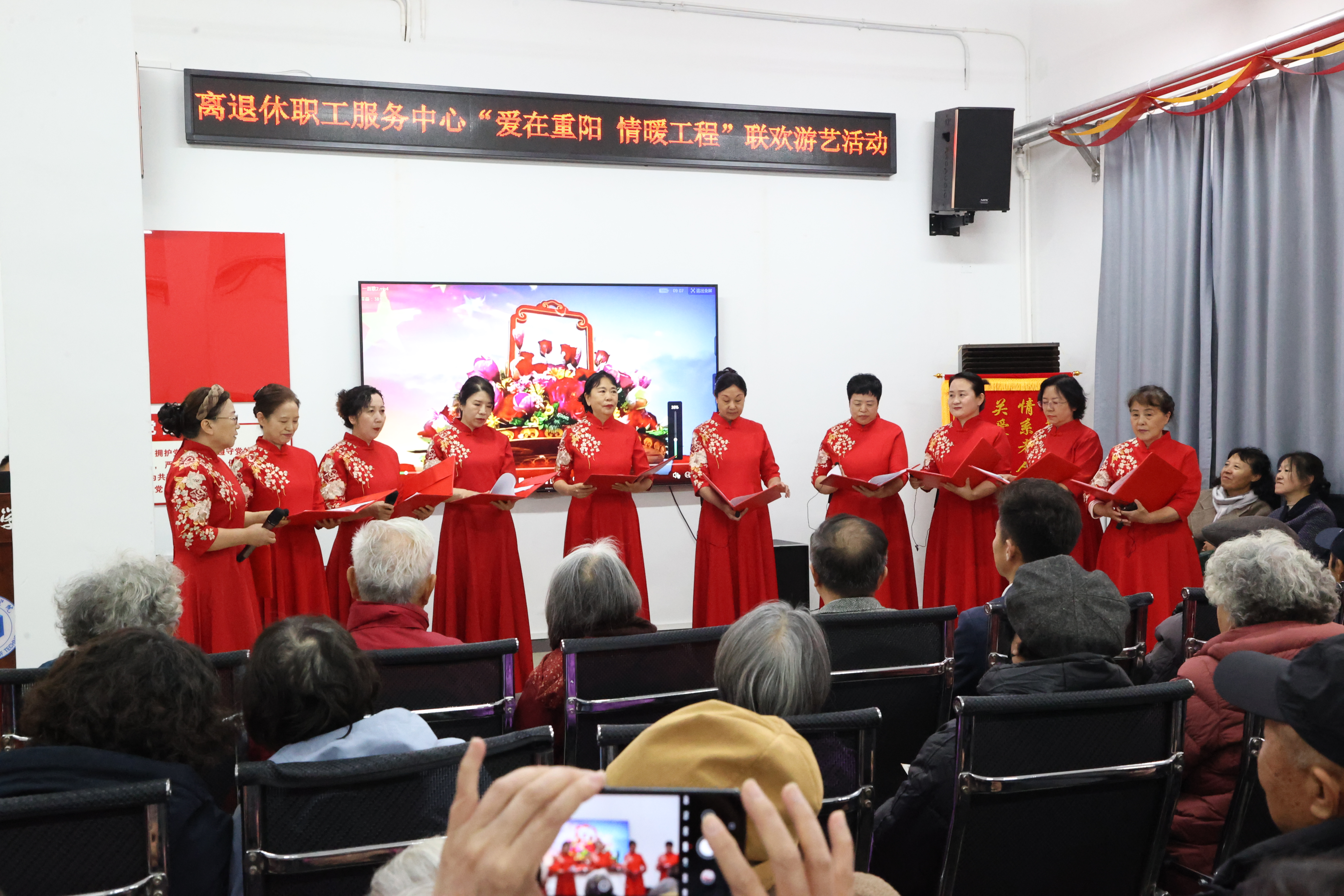活动现场,离退休教职工们容光焕发、神采飞扬,他们自编自导的朗诵、独唱、合唱、独奏等节目轮番登场,精彩纷呈。大家在舞台上尽情展示才艺,通过一个个精彩节目表达家国情怀、歌颂美好生活,赢得现场热烈掌声。活动在合唱《夕阳红》中落下帷幕。