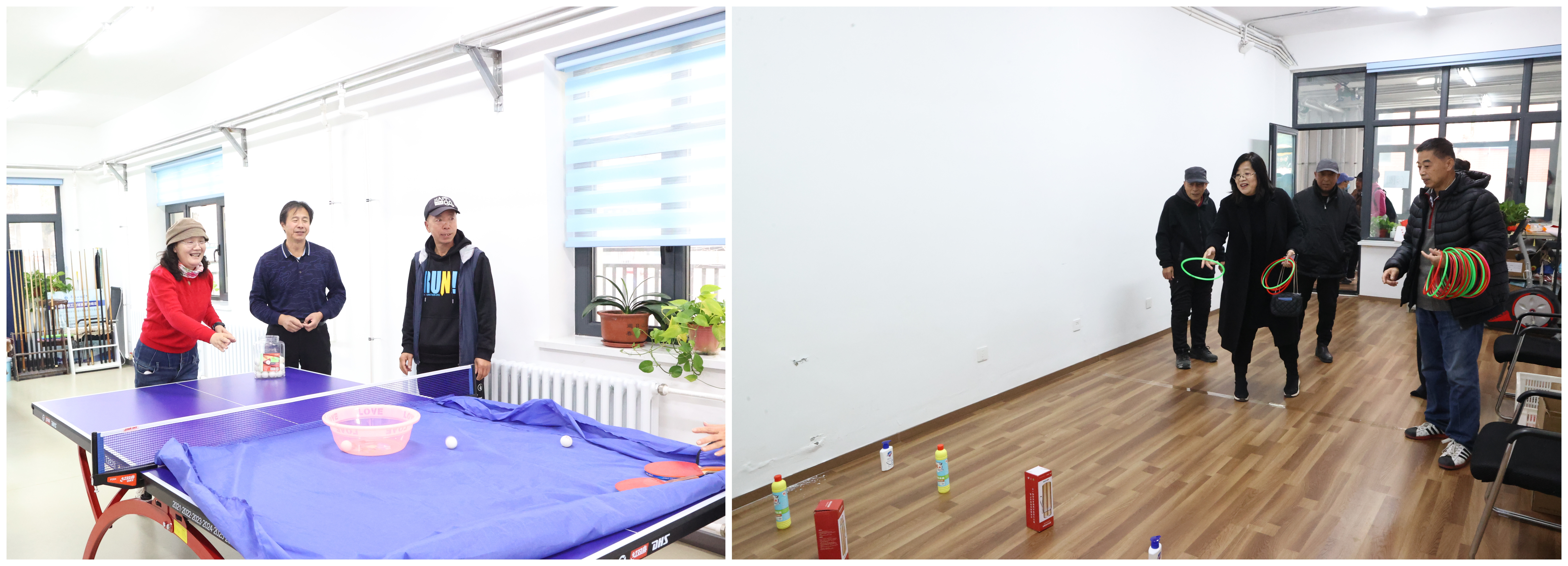 活动结束后,老同志们前往离退休职工服务中心的书画展区与游戏区域。书画展区展示了离退休教职工们的书法、摄影作品,大家一边欣赏作品一边回忆往昔岁月,畅谈时代变迁;在游戏区域设置了丢沙包、套圈、飞碟等游戏,大家积极参与其中,活动现场欢声笑语,其乐融融。
