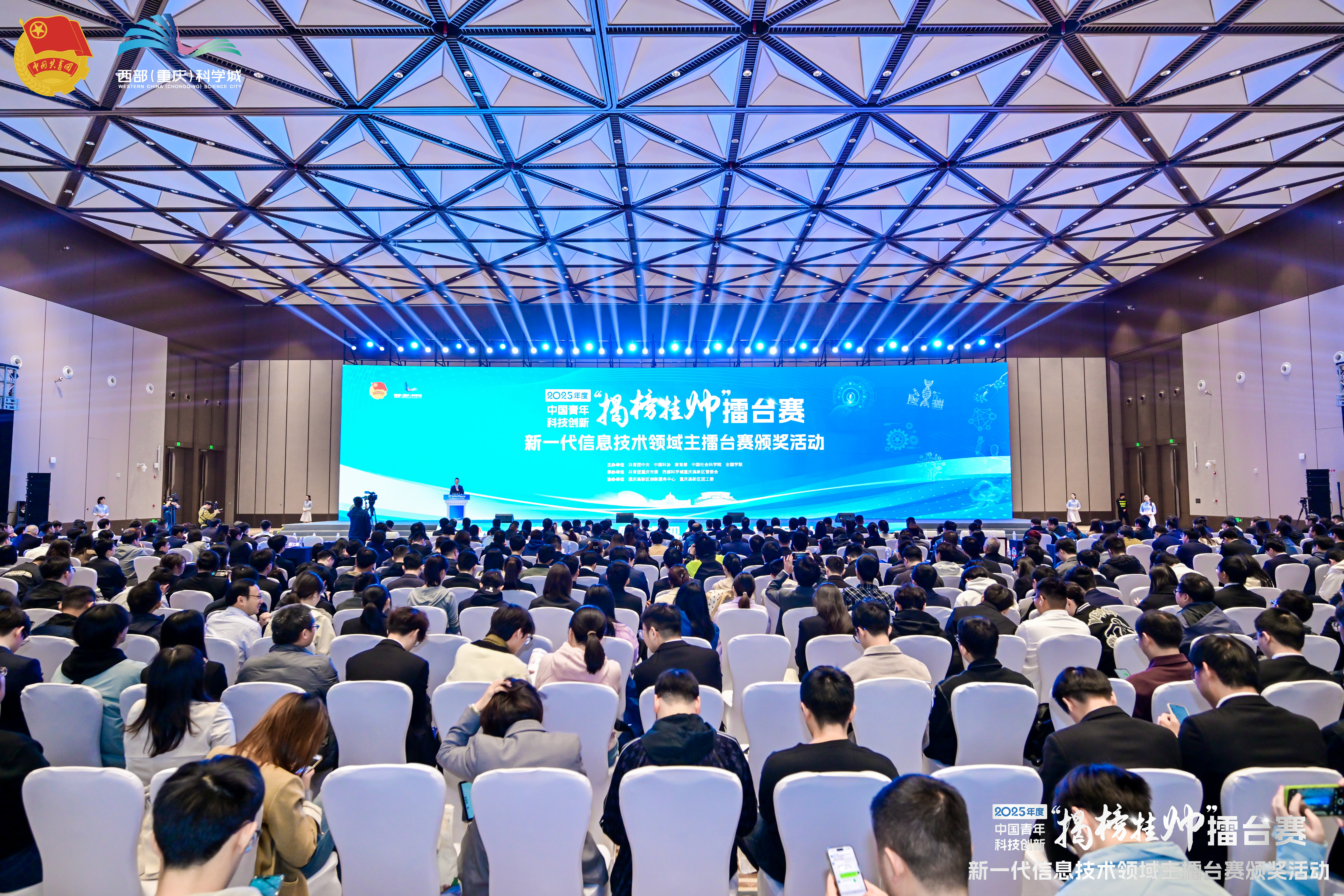 中国青年科技创新“揭榜挂帅”擂台赛由共青团中央、中国科协、教育部、中国社会科学院和全国学联共同主办,以“青春为中国式现代化挺膺担当”为主题,围绕新一代信息技术、人工智能、新能源、新材料、高端装备、机器人、生物医药、种业科技等战略性新兴产业和未来产业,分领域在全国设立8个主擂台城市,发布榜题129个,吸引全国7000余支青年团队报名参赛,榜题数量、赛事规模、奖励条件创历届之最。其中,新一代信息技术领域主擂台城市设在重庆市,吸引了来自清华大学、北京大学、重庆大学等378所高校的1250余支团队、超过两万名大学生和青年科技人才同台竞技。