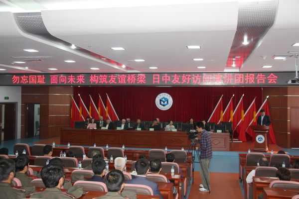 省对外文化交流中心王玉坤副秘书长首先致辞。演讲团团长植田渥雄、副团长李素桢女士及演讲团成员山下正男、饭白荣助、平井润一及、桥口杰先生分别就“九·一八”事件的亲历、亲闻做了生动而感人的报告。让那段历史更加鲜活、生动地展现在师生眼前,也更加激励同学们牢记历史,为振兴中华而努力学习的决心。