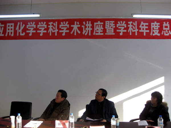 与会人员听取了任慧娟教授作的题为“高效纳米稀土发光配合物的合成与性能研究”报告;孙德慧博士作的题为“荧光磁性多功能载体的合成与表征”报告;李素文博士后作的题为“用于太阳能电池的近红外发光材料的研究”报告。应用化学学科带头人任慧娟教授对2010年应用化学乐鱼官网网页版_乐鱼(中国)官方工作进行了总结。