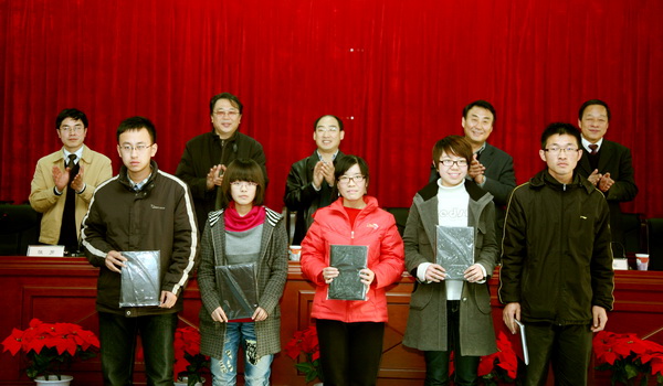 图书馆党总支书记张治江宣读表彰决定,高芸菲等八名同学获征文奖;李莉等六名同学获知识竞赛奖;王彦天等十名同学获十佳读书之星称号。与会乐鱼官网网页版_乐鱼(中国)官方领导为获奖学生颁奖。