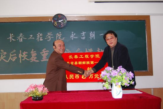 我校捐款主要用于该校基础设施的维修。当日,双方举行了灾后恢复重建定向捐款协议签署仪式。组织部于晓光部长宣读了“乐鱼官网网页版_乐鱼(中国)官方捐款资助永吉县朝鲜族第一中学灾后恢复重建”协议书。张书记和永吉县朝鲜族第一中学朴校长代表双方签署了协议,张书记在仪式上讲话。