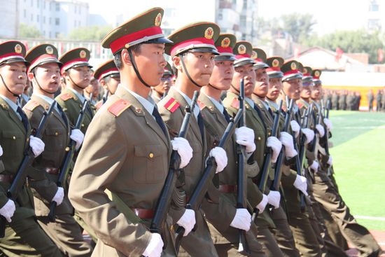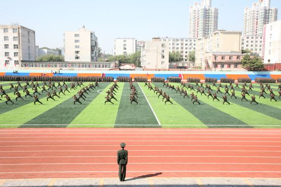 阅兵场上,绿草茵茵,彩旗飘扬,阅兵仪式正式开始。同学们口号嘹亮,身姿挺拔,青春的激情扑面而来,他们以昂扬的斗志,矫健的步伐,正步通过主席台接受检阅。不同的连队,同样的豪情,经过20余天军训的磨练,2010级新生们用黑脸庞、用汗水,更用纪律与坚持锤炼了自己的意志。