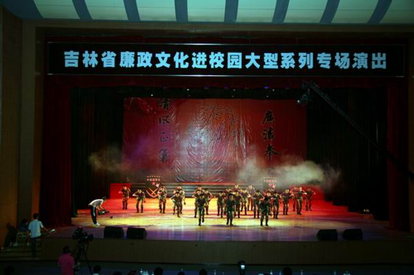 6月12日下午,我校国防教育学院学生排演的大型舞蹈《铁甲雄风》参加了全省廉政文化进校园活动舞蹈专场演出。
