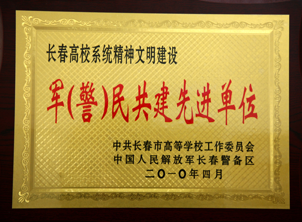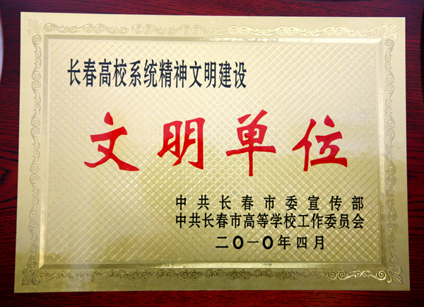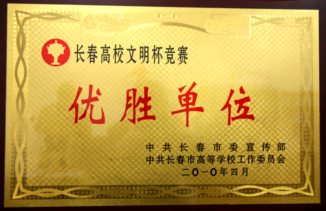 近日,中共长春市委召开2009年度“高校文明杯”竞赛活动总结表彰大会,我校获“高校文明杯”竞赛活动“优胜单位”、“精神文明建设先进单位”、 “军(警)民共建工作先进单位”称号。我校主校区食堂被评为文明食堂。