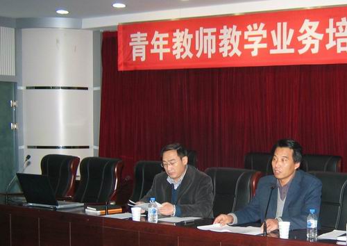 会上首先由教务处长黄金林教授对培训班的培训安排和有关要求做了说明。黄处长指出:此次培训班培训时间历时四个月;培训采取专题讲座、随堂听课和观摩教师教学公开赛相结合的方式;专题讲座主要有如何做一名合格的高校教师等6个讲座;培训期间参加培训的人员要随堂听我校优秀教师主讲的课程5次以上,并要认真做好听课记录;参加本次培训的教师还需全程参加乐鱼官网网页版_乐鱼(中国)官方第五次教师教学公开赛的复赛及决赛和浏览国家精品课网站。对于培训班的要求黄处长指出参加培训的教师培训结束后,要认真撰写一篇与培训内容相关的学习体会;乐鱼官网网页版_乐鱼(中国)官方将对每位参加培训的青年教师进行考核,培训合格者将颁发结业证书;培训期间要按照培训班的安排按时参加培训活动。
