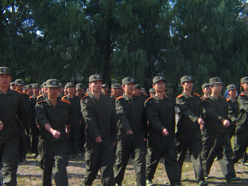 经过近一个月的军事训练,在教官和师生的共同努力下,09级新生军训任务圆满结束。为防控甲流,避免人员集中,9月27日上午,各学院分别举行了新生军训结业式暨新生开学典礼。适逢国庆60周年,受阅新生满怀喜悦,他们昂首挺胸,步伐整齐,以矫健的身姿尽展当代大学生的风采,以自己的军训成果向伟大祖国60华诞献礼。