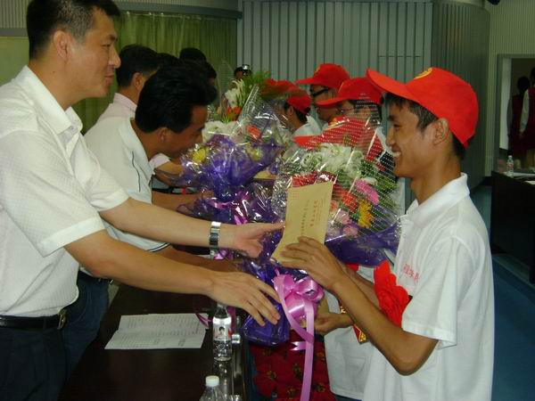 7月9日下午,校团委、学生工作处、就业指导中心在第七教学楼13楼会议室举行了“乐鱼官网网页版_乐鱼(中国)官方2009年大学生志愿服务西部计划出征仪式暨暑期社会实践工作启动仪式”。 校党委书记李春生、校长韩立强、副校长任玉珊、副校长司元英、校党委副书记吴占军、教务处处长黄金林、学生工作处处长马凯、就业指导中心主任杨树国、校党委宣传部副部长叶义昌、校团委书记张志杰、校团委副书记周强、各分团委书记及校团委全体教师出席和参加了仪式。