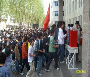 5月14日,水环学院全体师生在五教正门隆重举行了抗震救灾募捐大会,为四川等受灾地区献出工程学子的一份爱心。