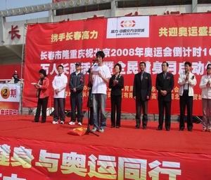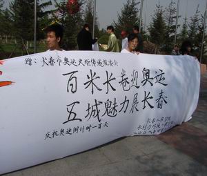 4月30日,水环学院学生参加了由长春市政府举办的“北京2008奥运会倒计时100天万人长跑暨全民健身启动仪式”,并将学院师生绘制的“奥运百米长卷”赠送给长春市体育局奥运火炬传递组委会。