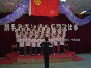 本次比赛以班级为单位,各班精心选出两首曲目参赛,歌唱题材新颖。每个合唱代表队都服装整齐,个个精神饱满。他们用自己浑厚的声音抒发着做为一个团员的心声,每一首曲目都赢得了观众们热烈的掌声。比赛期间,还穿插了诗朗诵、现场书画等活动,使比赛的气氛更为浓厚。最终土木0744班获得了第一名,0742班赵月同学获得“最佳指挥”奖。