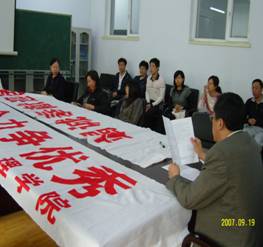 9月19日14时,在我校距离国家本科教学水平评估一个月之际,理学院在会议室举行了“迎国评、促建设、谋发展”的专题再动员大会,教研(实验)主任、教职工党员、学生党员、党的积极分子齐聚一堂。党总支书记郑春做了再动员,对下一步迎评促建工作进行了再部署。他代表理学院号召全体师生员工在迎接国评的关键冲刺阶段再鼓劲、再流汗、再细致、再完善、再奉献。大家情绪高涨,纷纷表示一定一丝不苟地完成各项任务,确保评建工作万无一失。全体与会人员在“竭诚奉献迎国评,齐心合力争优秀”的条幅上庄重地签下自己的名字。