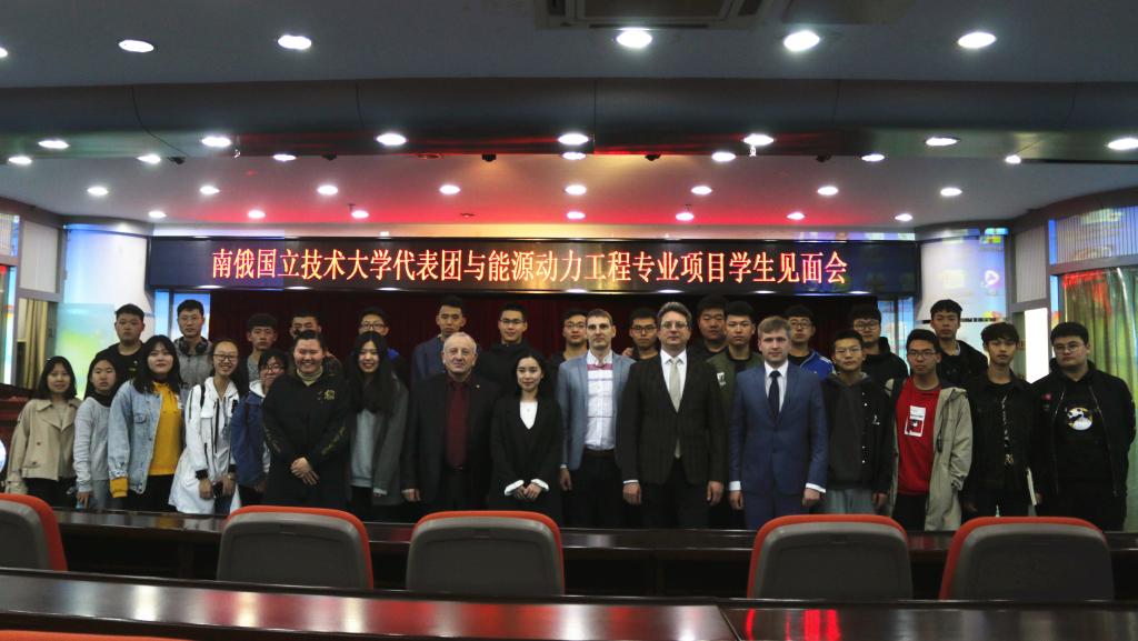 会谈后,两校合作项目学生见面会在第一报告厅举行。见面会上,播放了南俄国立技术大学专门的视频短片,托克马科夫院长介绍了南俄国立技术大学丰富多彩的学生活动。