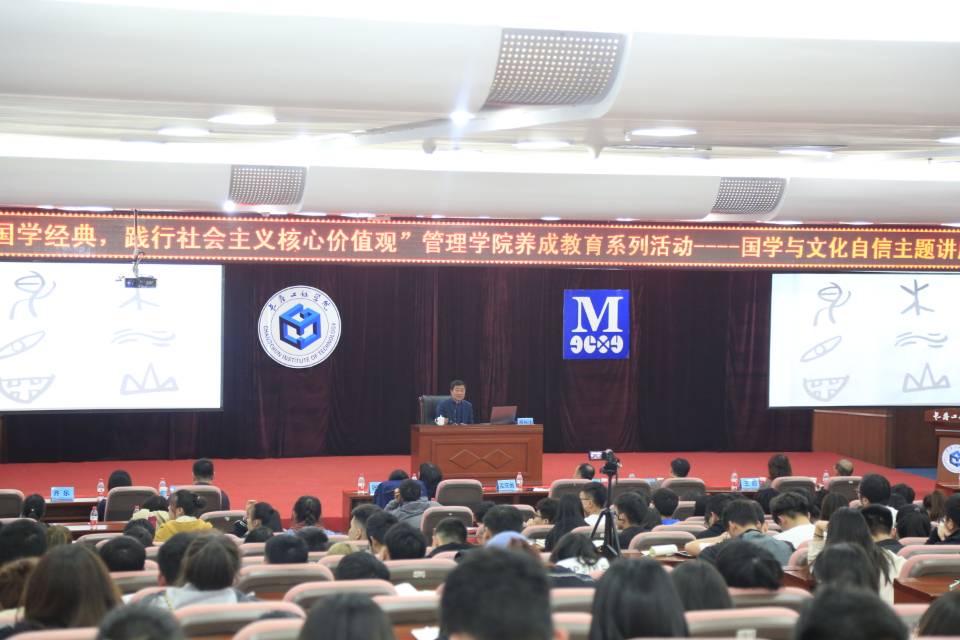 青春的活力爆发需要国学知识助力,国学的进一步发展更需要青春人来推动。2019年4月29日,管理学院举办养成教育系列活动——“弘扬国学经典,践行社会主义核心价值观”主题讲座,邀请东北师范大学文学院高长山教授为师生们带来了题为《国学与文化自信》的精彩讲座。
