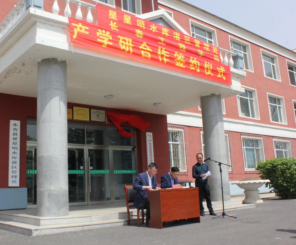 2019年5月10日上午,我校与星星哨水库灌区管理处产学研合作校外实践基地签约揭牌仪式在永吉县星星哨水库灌区管理处隆重举行。窦立军副校长、永吉县委副书记王劲松、永吉县副县长滕凤臣、星星哨水库灌区管理处书记车长文,我校教务处、科技处和水环学院相关领导出席了签约仪式。签约仪式由星星哨水库灌区管理处魏希莹主持。