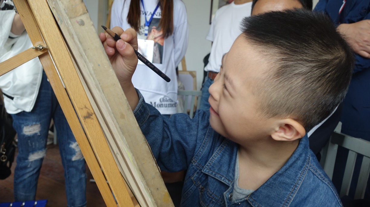 志愿者们为这群小天使们安排了教室结对仪式、画室参观与授课、体育馆游戏互动等环节。结对仪式上,“唐宝”们表演的金龙拍拍操节奏欢快,志愿者门带来的歌曲情深意浓。画室里,孩子们认真完成的作品稚嫩又不失童趣。体育场内,大手拉小手的游戏互动爱意满满。一位“唐宝”家长这样说:“每个人都以各种各样的形式存在着,我们的孩子只是以一种特殊的形式生活在这个世界上。感谢建筑与设计学院志愿者们三年来的辛苦付出,以及对我们孩子的理解、尊重和真挚的爱。”