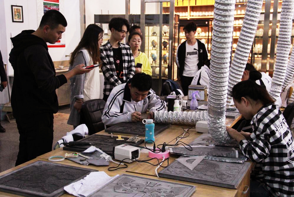 在特教楼学生作品展览馆,看到精美的蛋雕、浮雕、编织、画盘及美术作品,参加学习交流的师生不断发出感叹,“这些人听不到外界的声音,但是他们的制作的东西一点也不比普通人差,甚至比一般人做的要好。”