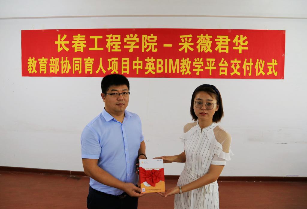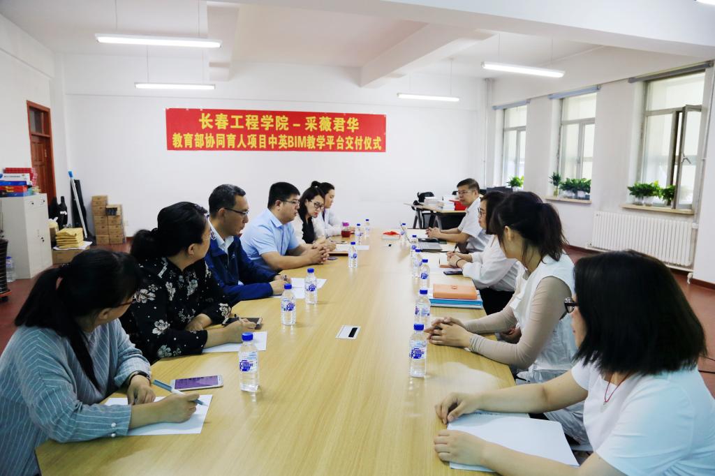 6月18日,在我校BIM技术产业学院会议室举行的交付仪式上,北京采薇君华教育咨询有限责任公司(以下简称“采薇君华”)向我校赠送了价值25万元的中英BIM教学平台。
