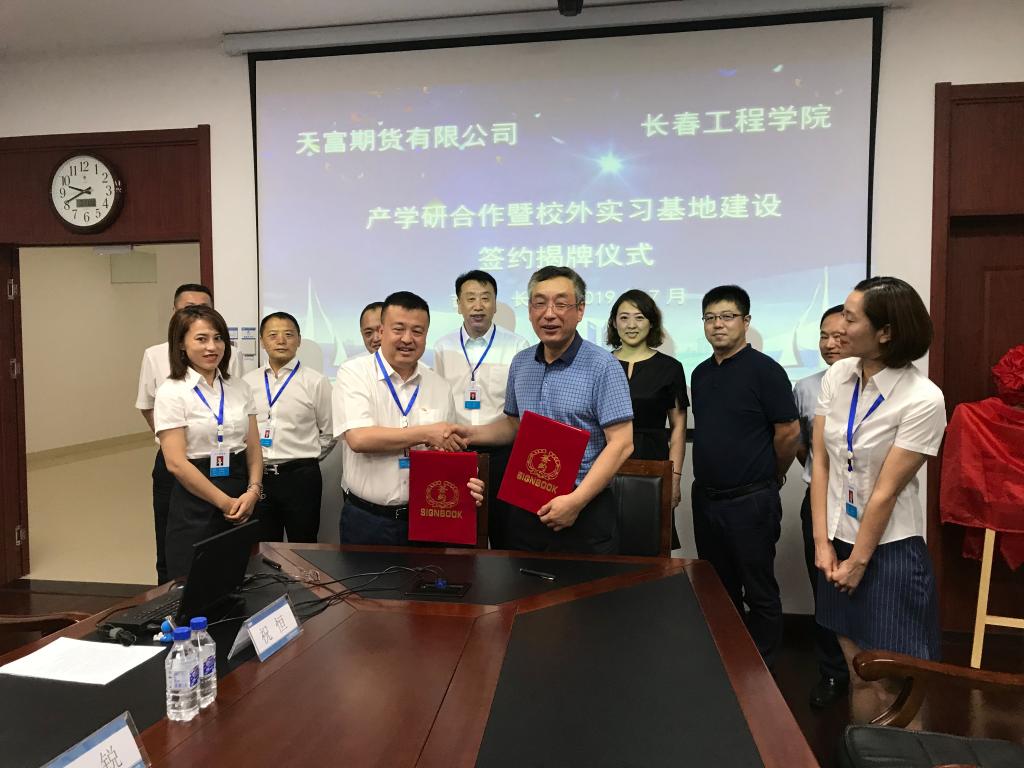 2019年7月11日上午,我校与天富期货有限公司产学研合作校外实践基地签约揭牌仪式在东北亚国际金融中心隆重举行。