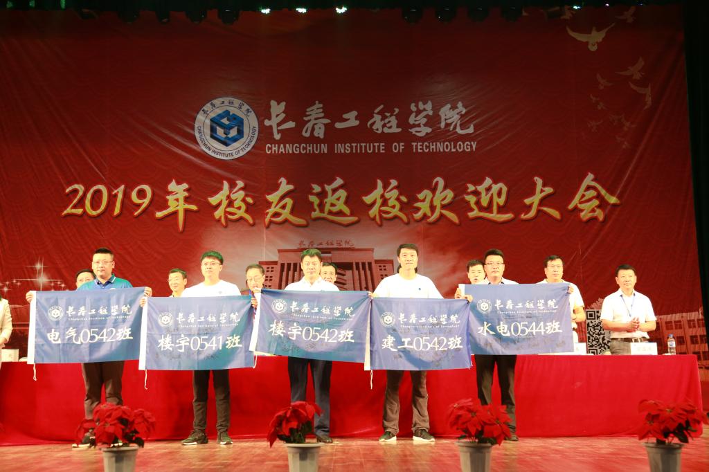 在欢迎大会上,水动652班和电力652班的校友代表分别向母校赠送了礼物。与会的各位领导为各班级校友代表授予了班旗。