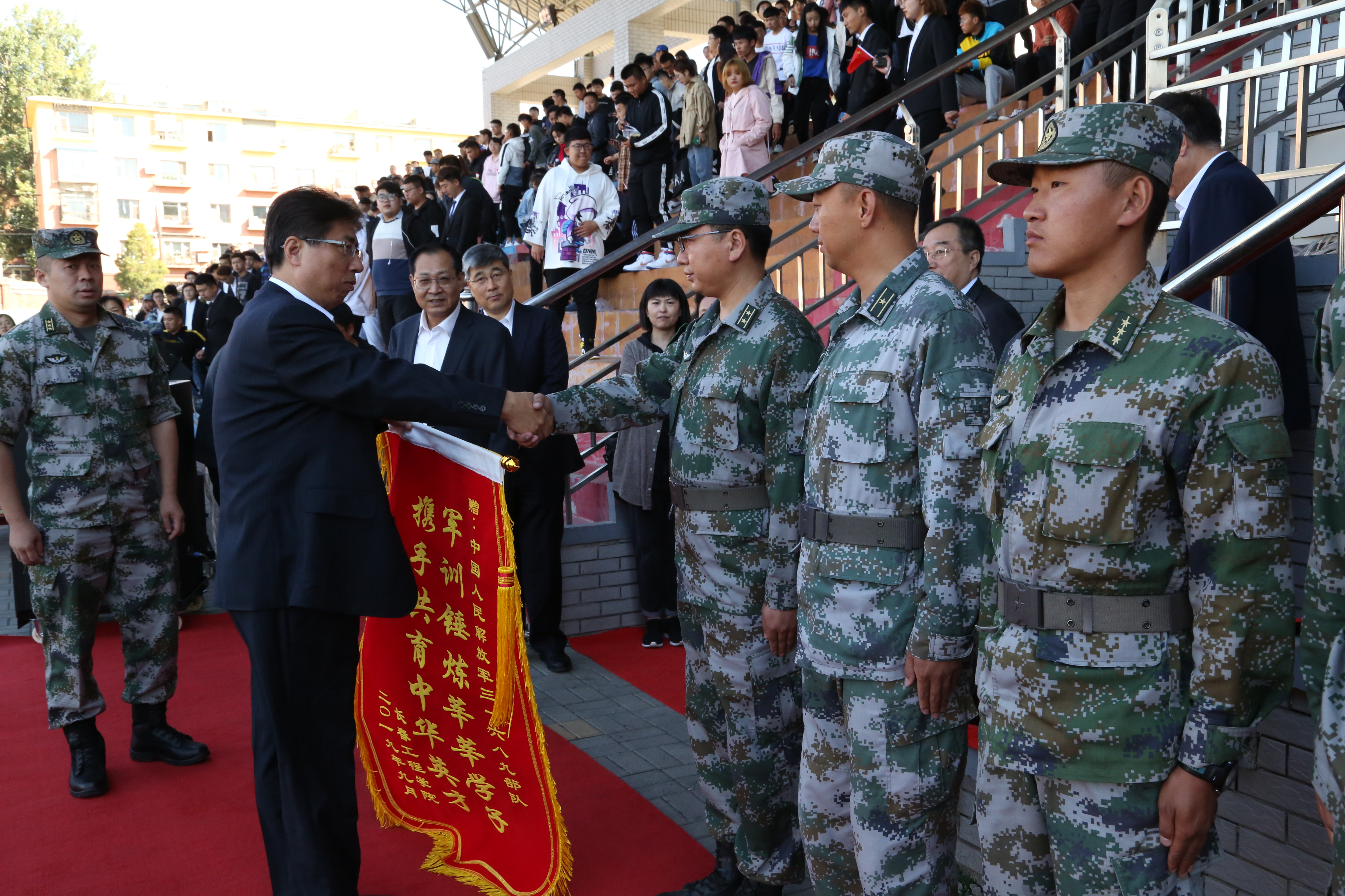 沙场秋点兵,军训砺新人。9月29日,我校2019级新生军训结业式在湖西校区体育场举行。党委书记潘福林、中国人民解放军某部队上校李海洋、党委副书记温义生、党委副书记张冀男、纪委书记陈丽华、副校长孟祥萍、副校长杨永生、副校长窦立军、副校长杨悦新等出席结业式。结业式由党政办公室主任张志杰主持。
