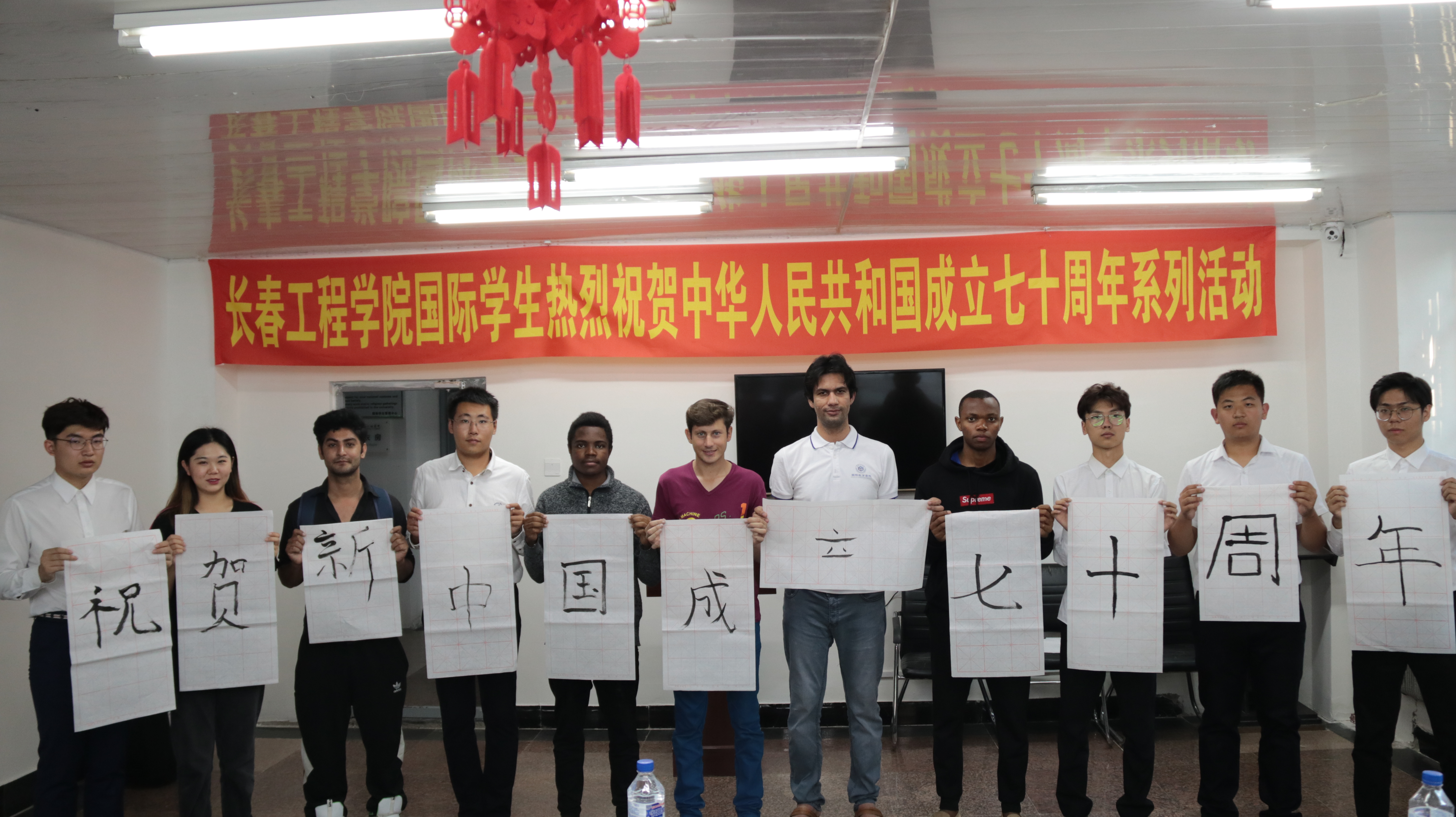 我校注重提升国际学生教育教学质量,坚持开展“知华爱华”教育,通过丰富多彩的文化体验活动,增强国际学生对中国文化的认知和兴趣。本次活动中,学生们书法作品虽然稚嫩,但字里行间却表达了对中国的热爱和对新中国成立70周年的美好祝福。