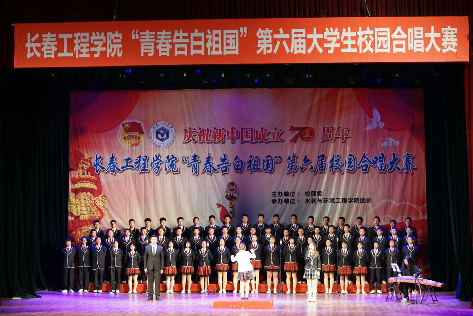 为庆祝新中国成立70周年,培养大学生的爱国情怀,丰富校园文化活动,2019年10月30日,由校团委主办,水利与环境工程学院承办的 “青春告白祖国”第六届大学生校园合唱大赛在湖西校区大学生活动中心拉开帷幕。