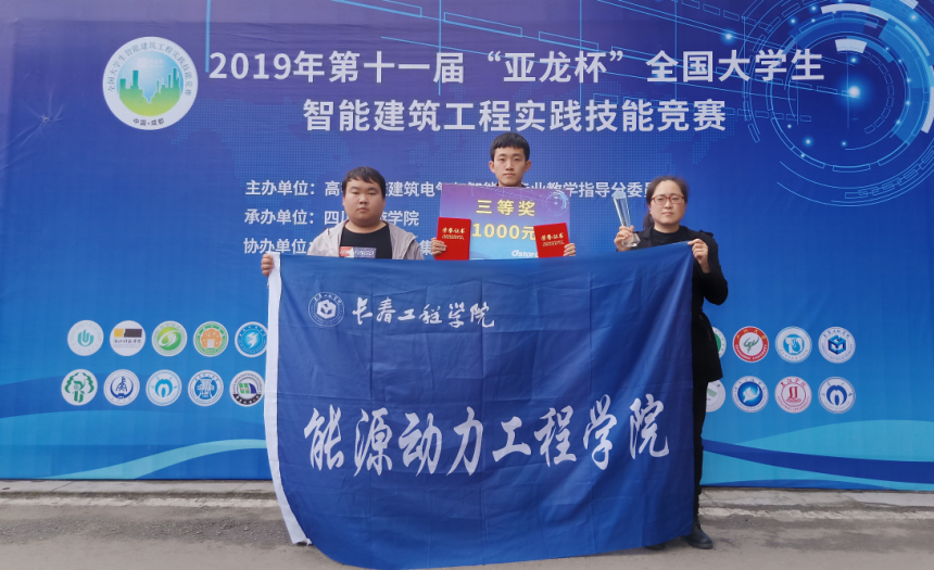 2019年11月1日至3日,由高等乐鱼官网网页版_乐鱼(中国)官方建筑电气与智能化学科专业指导委员会主办第十一届“亚龙杯”全国大学生智能建筑工程实践技能竞赛在成都举行。建筑电气与智能化专业学生潘新胜和朱俊良荣获团体三等奖,指导教师为我校能源动力工程学院教师于兰、黄丫。