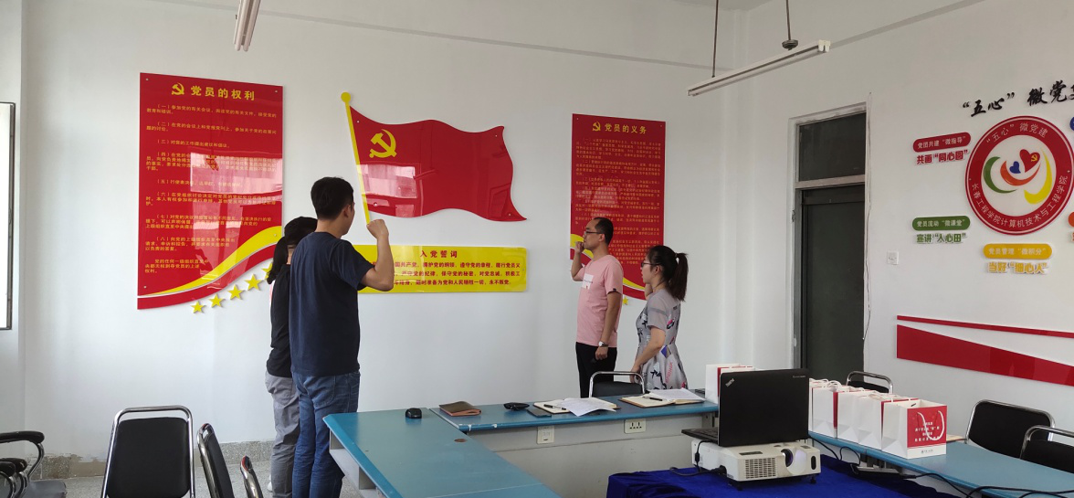 会后,全体党员通过“云”方式举行了庄严的重温入党誓词仪式,全体党员面对党旗举起右拳,在党支部书记姜虹伊老师的带领下重温了入党誓词,表达了为共产主义事业奋斗终身的决心。