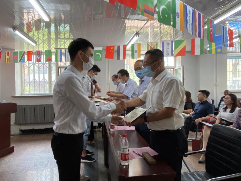 结业仪式上,国际教育学院副院长苗绘、党委副书记张天文分别宣读了有关2020届国际学生结业名单及评优结果。参加典礼的领导老师为国际学生颁发了结业证书和荣誉证书。