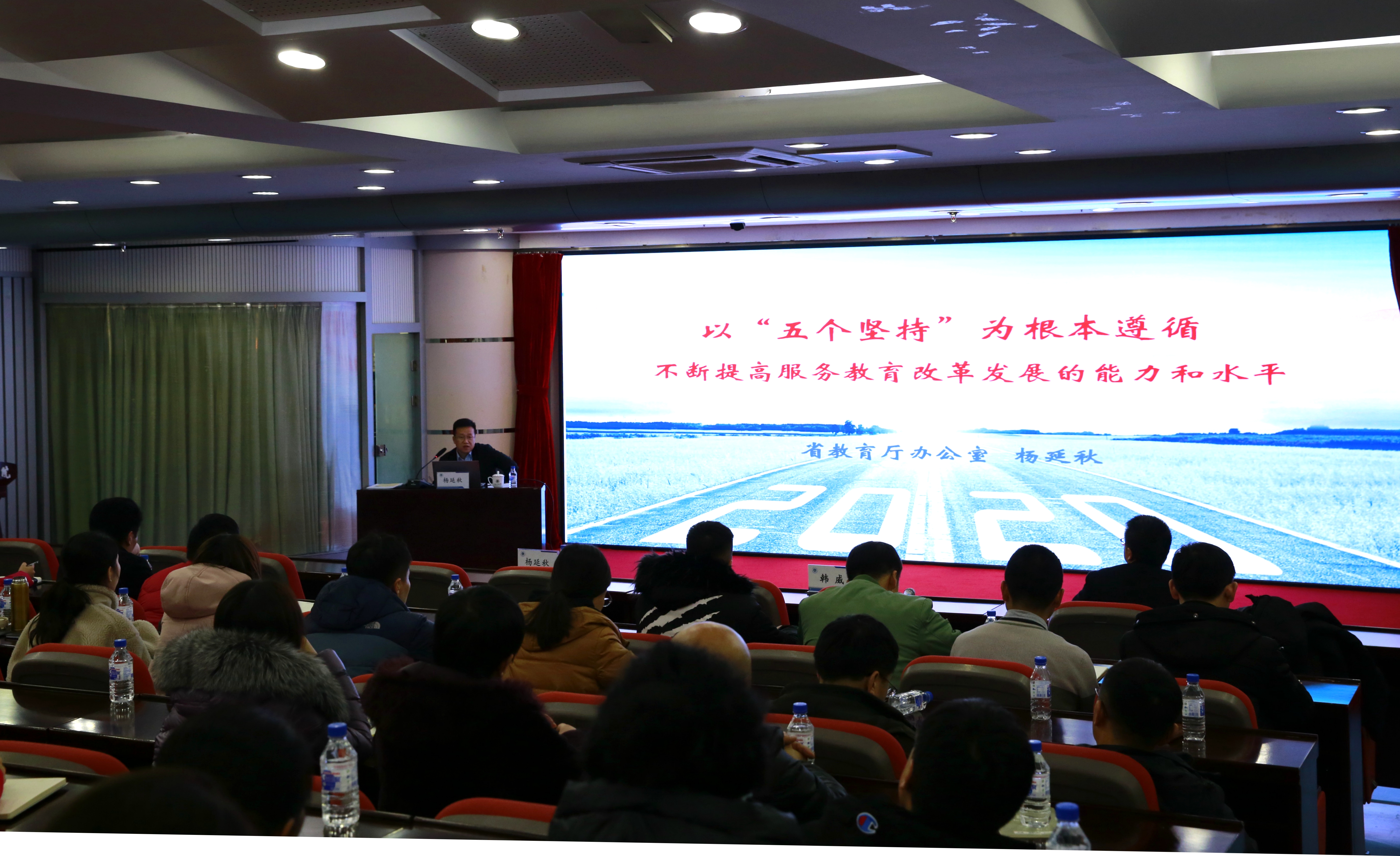 12月11日下午,省教育厅办公室副主任杨延秋结合教育厅办公室工作内容,围绕如何做好办公室工作,从“夯实履职尽责根基”“构建科学有序格局”“强化优质高效服务”三个方面作了专题讲座。