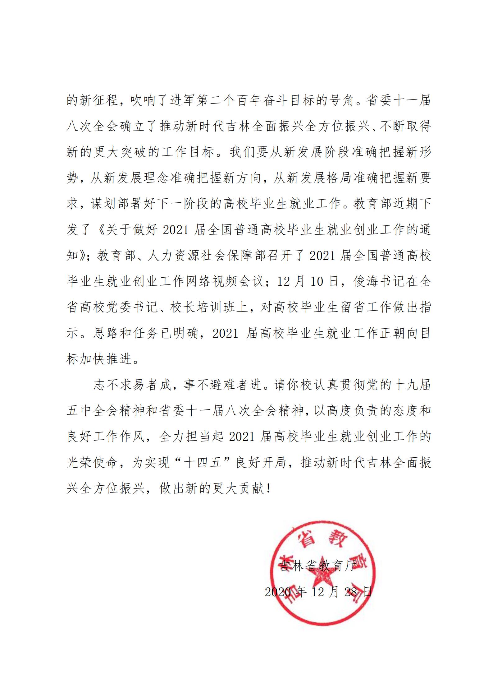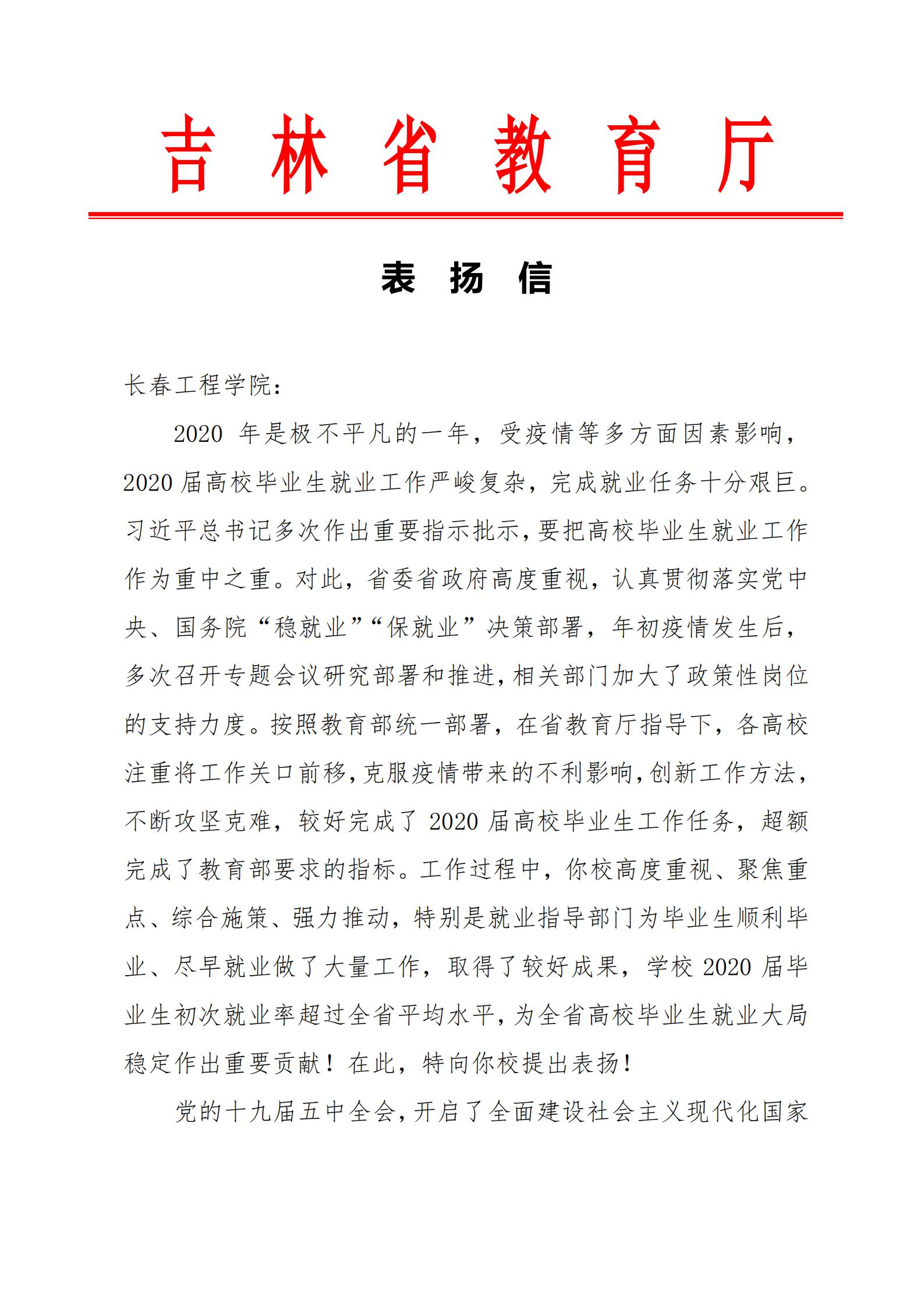 近日,吉林省教育厅发来表扬信,对我校毕业生就业工作提出表扬。