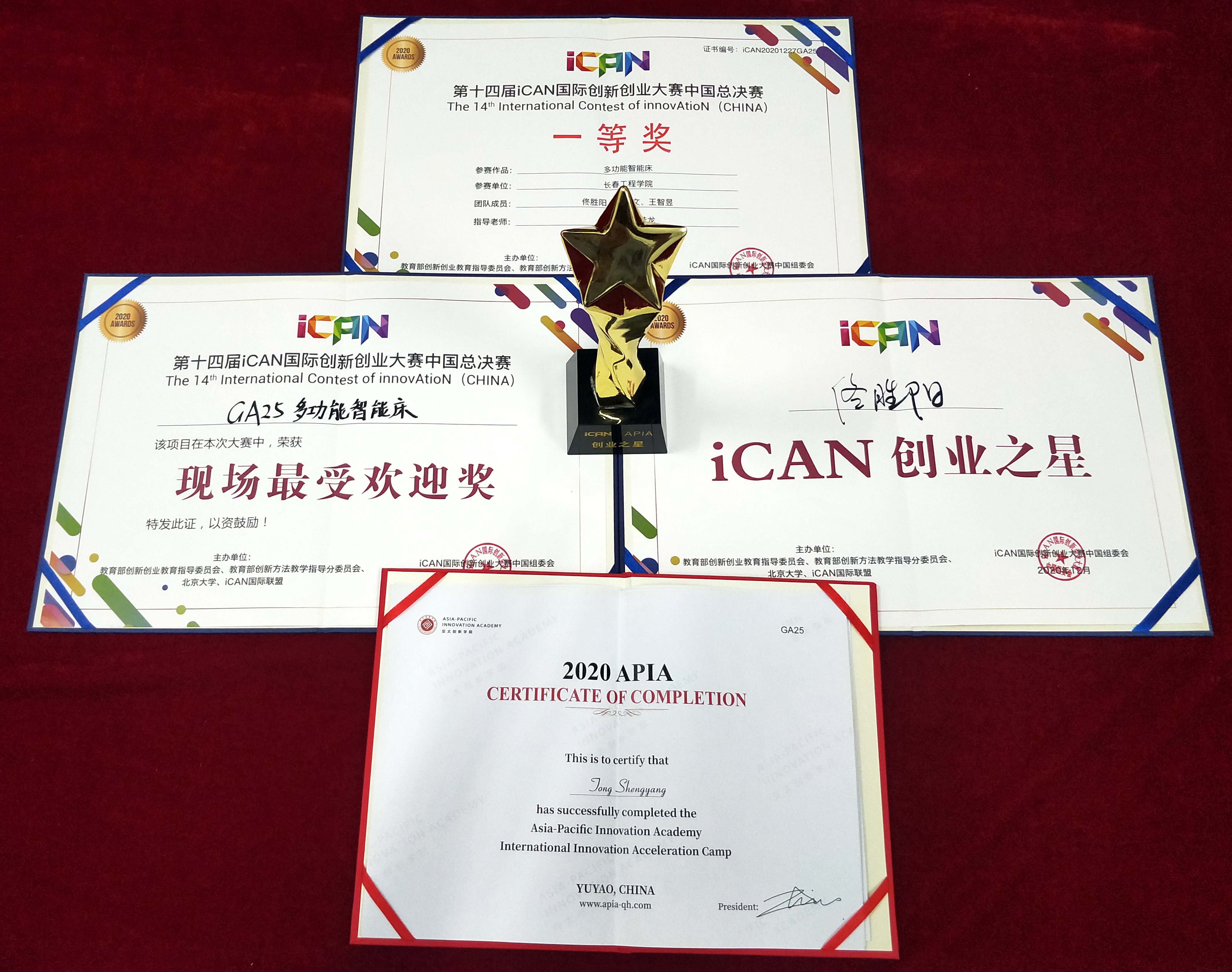 12月25日至27日,第十四届iCAN国际创新创业大赛中国总决赛暨2020亚太创新学院(APIA)国际创新加速营在浙江省余姚市盛大举行。我校参赛作品获一等奖,并以第一名的成绩获评现场最受欢迎奖、iCAN创业之星及亚太创新学院优秀作品。