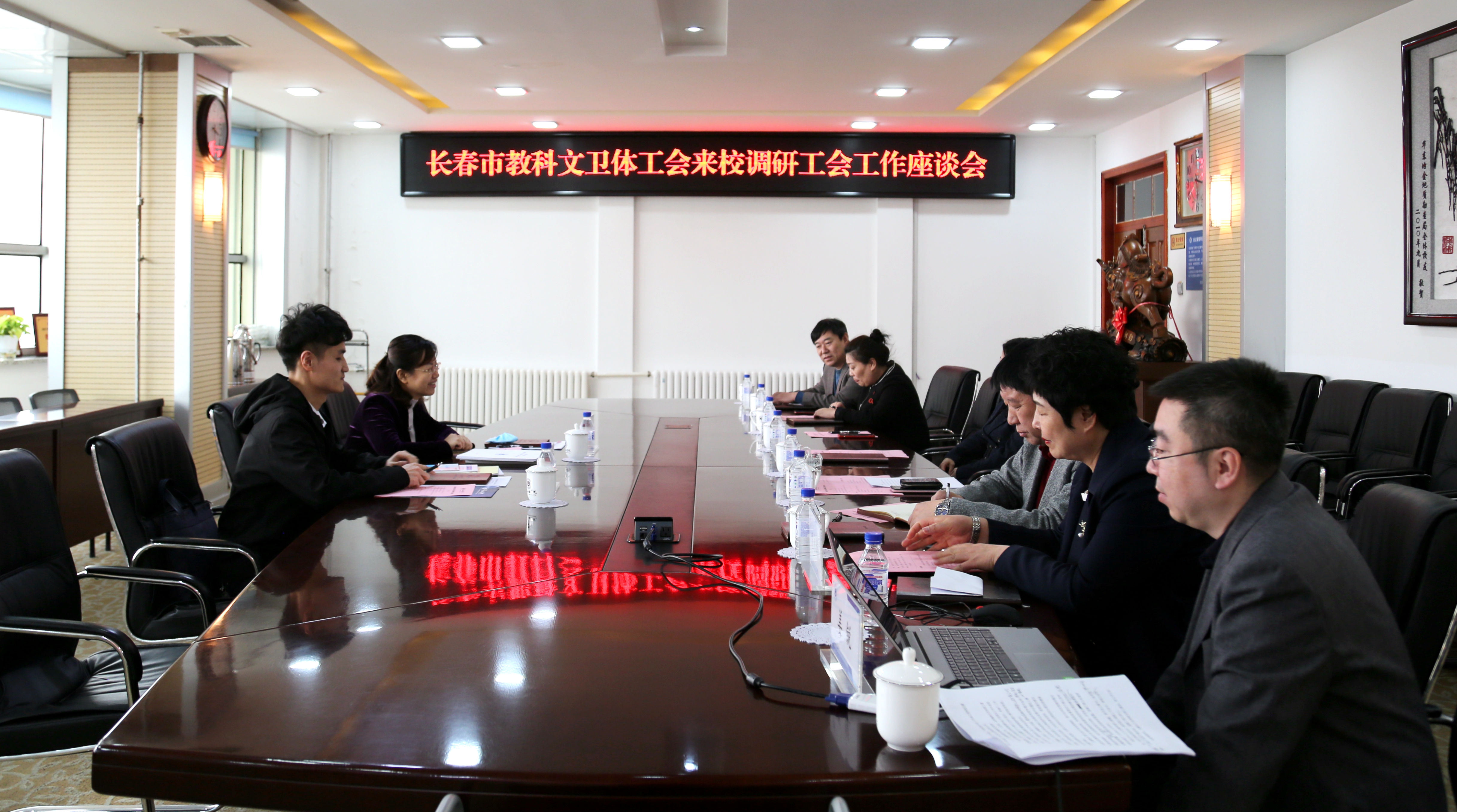 4月15日下午,长春市教科文卫体工会主席赵娜一行来我校调研座谈。乐鱼官网网页版_乐鱼(中国)官方党委副书记温义生,校工会、基层分工会、教工协会负责人及省、市师德标兵代表参加座谈。