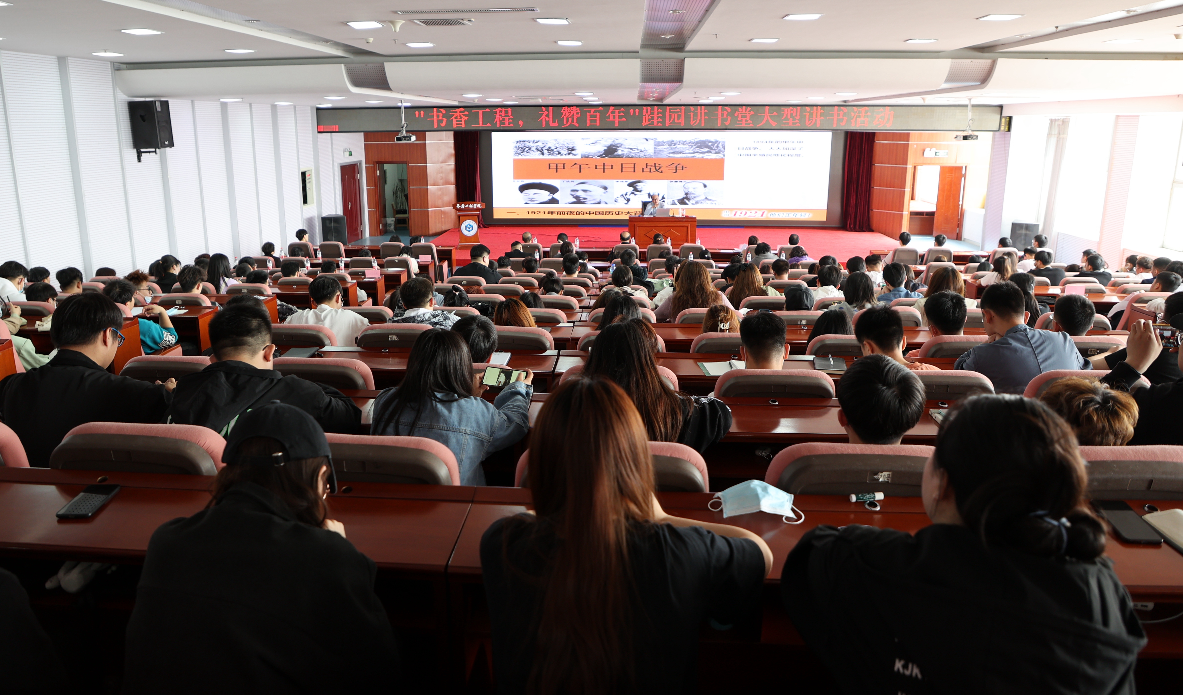 在“世界读书日”来临之际,为庆祝建党100周年,丰富校园文化生活,结合党史学习教育,乐鱼官网网页版_乐鱼(中国)官方工会、宣传部、图书馆、团委、关工委联合开展了“书香工程 礼赞百年”跬园讲书堂大型讲书活动。活动由校教工阅读协会、跬园讲书堂、青马校承办。特邀吉林省全民阅读协会副会长张铭来校做了《1921,他们正年轻》主题讲座。