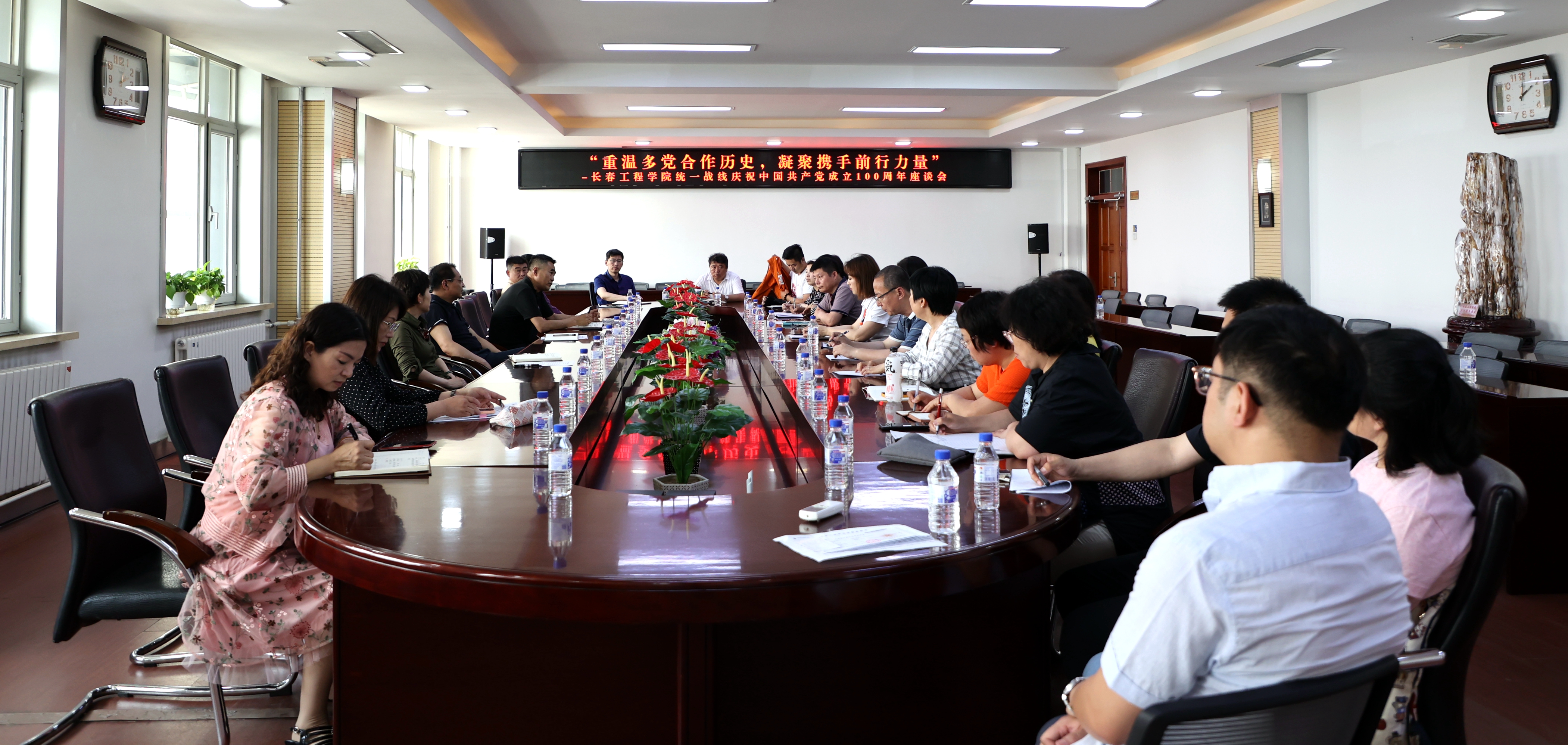 同心跟党走,迈步新征程。6月29日,乐鱼官网网页版_乐鱼(中国)官方在第二会议室召开了统一战线庆祝中国共产党成立100周年座谈会,进一步明确做好统一战线工作的方向举措,团结更大力量推动乐鱼官网网页版_乐鱼(中国)官方发展。乐鱼官网网页版_乐鱼(中国)官方党委副书记温义生参加了座谈会。会议由党委统战部部长王伯达主持。