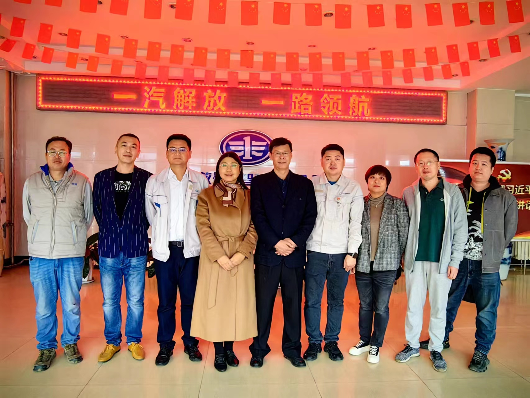 为落实吉林省一主六双发展战略,推动我省特色智能制造产业高质量发展,落实校企产学研深度合作,为青年教师提供学习交流的平台,2023年10月24日,我校机电工程学院党委书记王利涛、先进制造技术研究院院长张爽、汽车零部件检测中心常务主任高金刚、机器人专业教研室主任杨威及科研骨干教师段珍珍博士、侯岱双等人赴一汽解放汽车长春智慧客车分公司进行深度调研与技术项目交流。