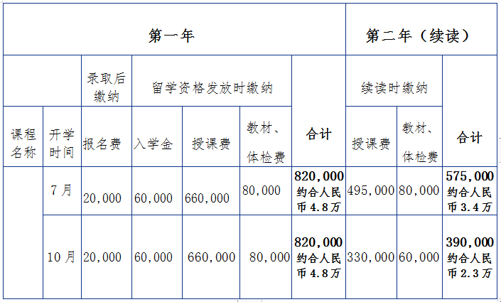 注:1.缴纳学费时,需同时缴纳日本语乐鱼官网网页版_乐鱼(中国)官方共济金加入费。费用为每年1万日元(约合人民币600元),缴纳该费用后即加入日本国民健康保险。