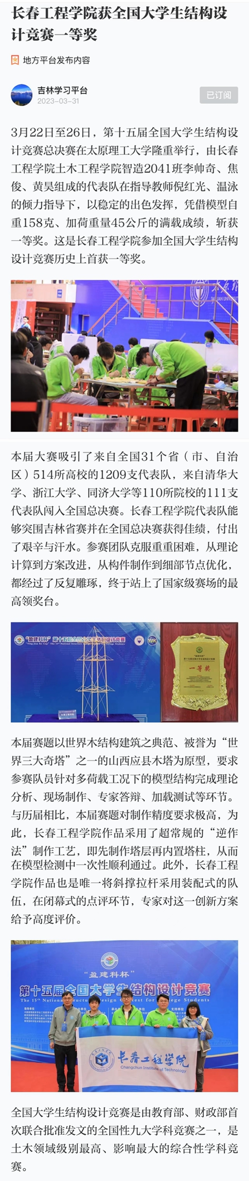 【学习强国】乐鱼官网网页版_乐鱼(中国)官方获全国大学生结构设计竞赛一等奖