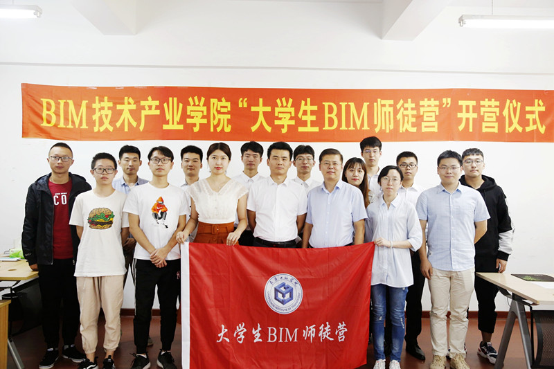 " 大学生 BIM 师徒营 " 以 BIM 技术为核心,创新 " 以师徒制为特征的‘ BIM 工程项目引 导、BIM 能力分段提升’的工学结合人才培养模式 "。通过师父进行 BIM 技术传帮带,师徒制大三学生为领导层,负责招新大一学生, 大三学生为大一学生的师父,传授 BIM 软件基本知识;大四学生为 大二学生的师父,大四学生给大二学生传授 " 专业 +BIM" 的知识及 辅导作业。BIM 技术产业学院现在执行 "2000-200-20"BIM 人才培养 计划,这次 " 大学生 BIM 师徒营 " 培养计划的开营,BIM 技术 " 双 计划 " 全面落地,为社会培养基于 BIM 技术的大土木复合型应用人才。