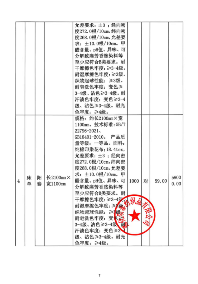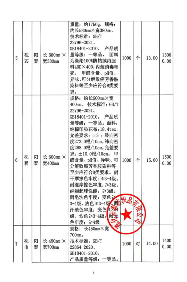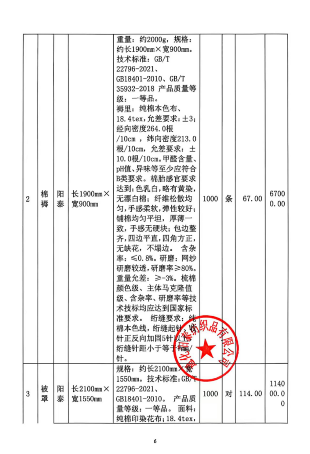 名称:棉被等(详见附件) 品牌:阳泰等(详见附件) 规格型号:约长2000mm*宽1500mm等(详见附件) 数量:1000条等(详见附件) 单价:86元等(详见附件) |