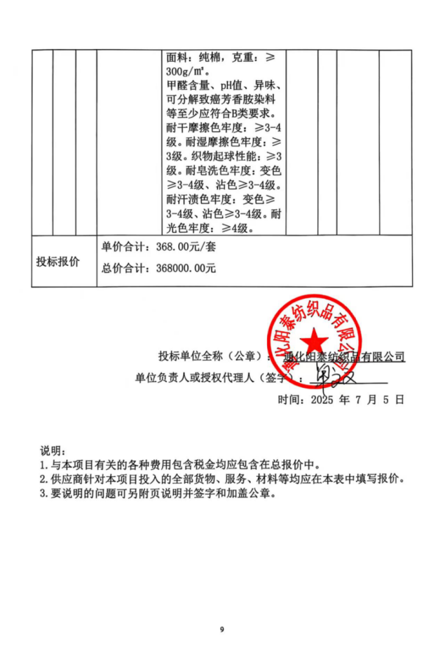 供应商名称:通化阳泰纺织品有限公司